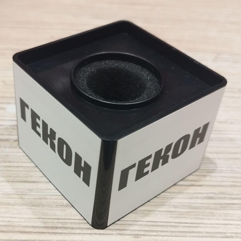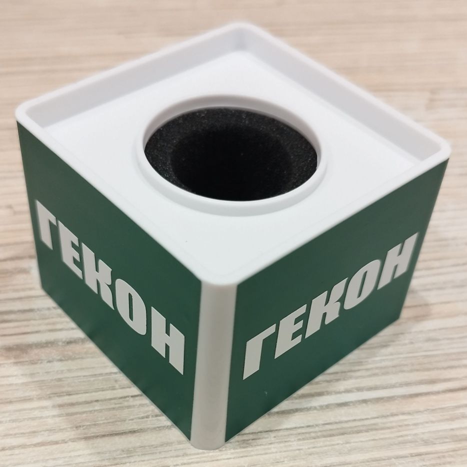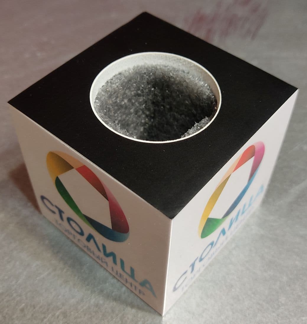 Кубики 65х65х65мм из ПВХ 5 мм. Наклейка на 4 грани 260х65 мм ламинируется матовой пленкой. Верх-низ кубика обычно делается белым или черным.